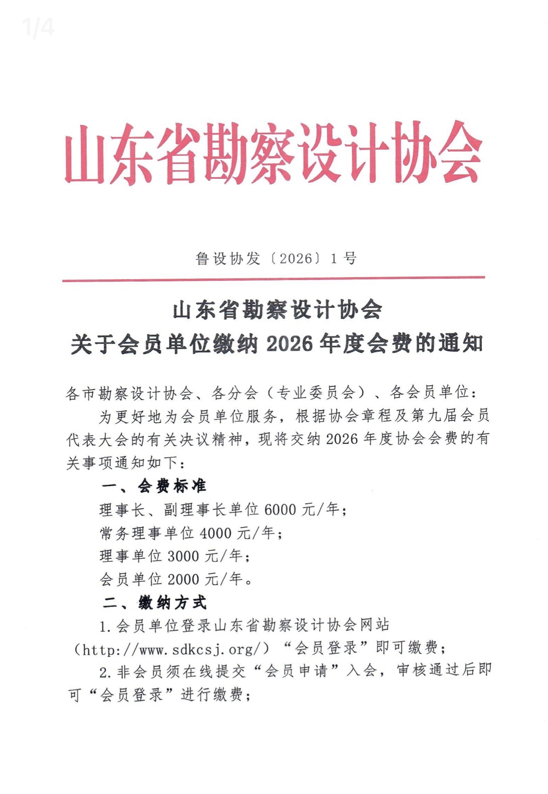 《山东省勘察设计协会关于会员单位缴纳2026年度会费的通知》