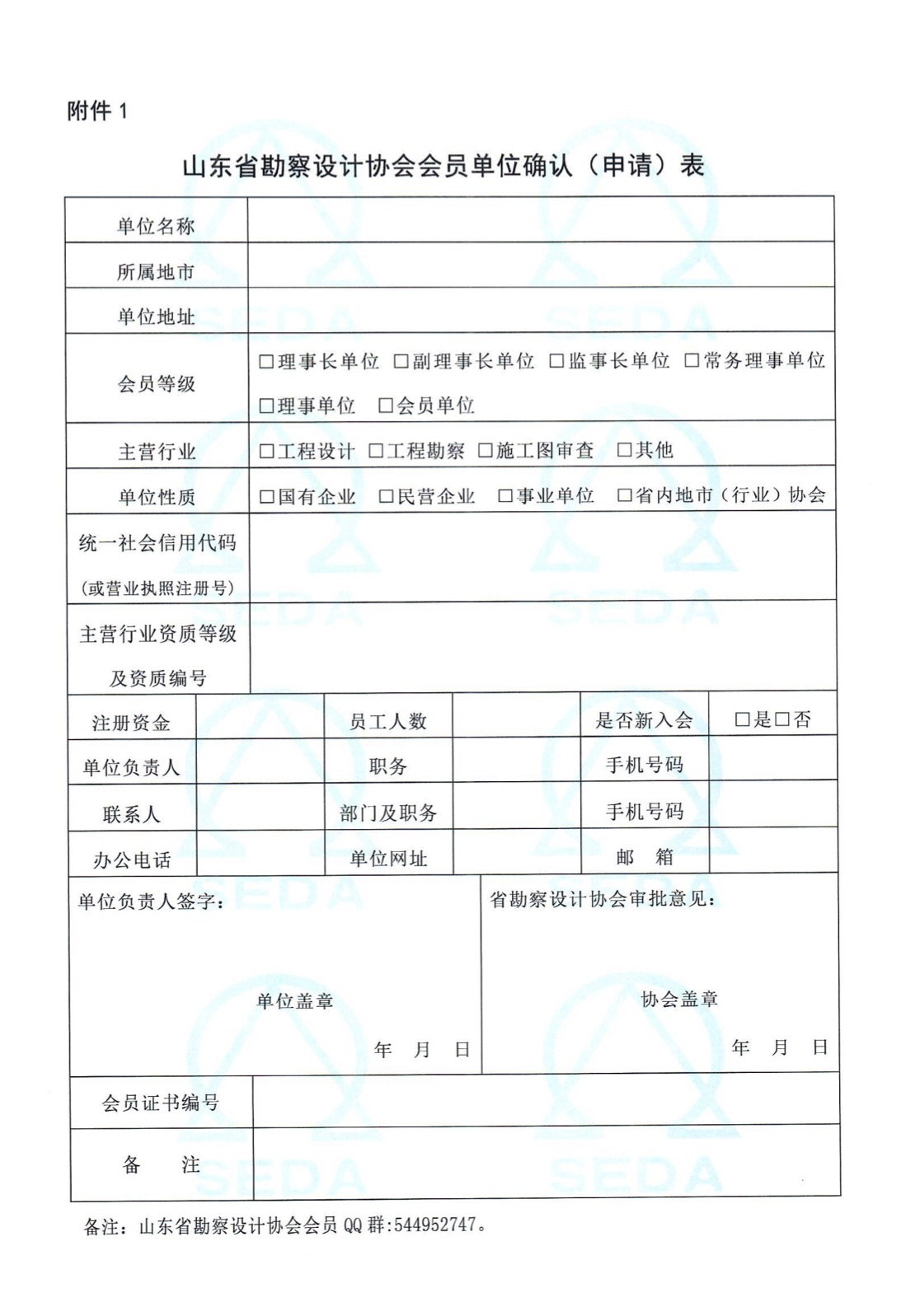 山东省勘察设计协会会员单位确认(申请)表
